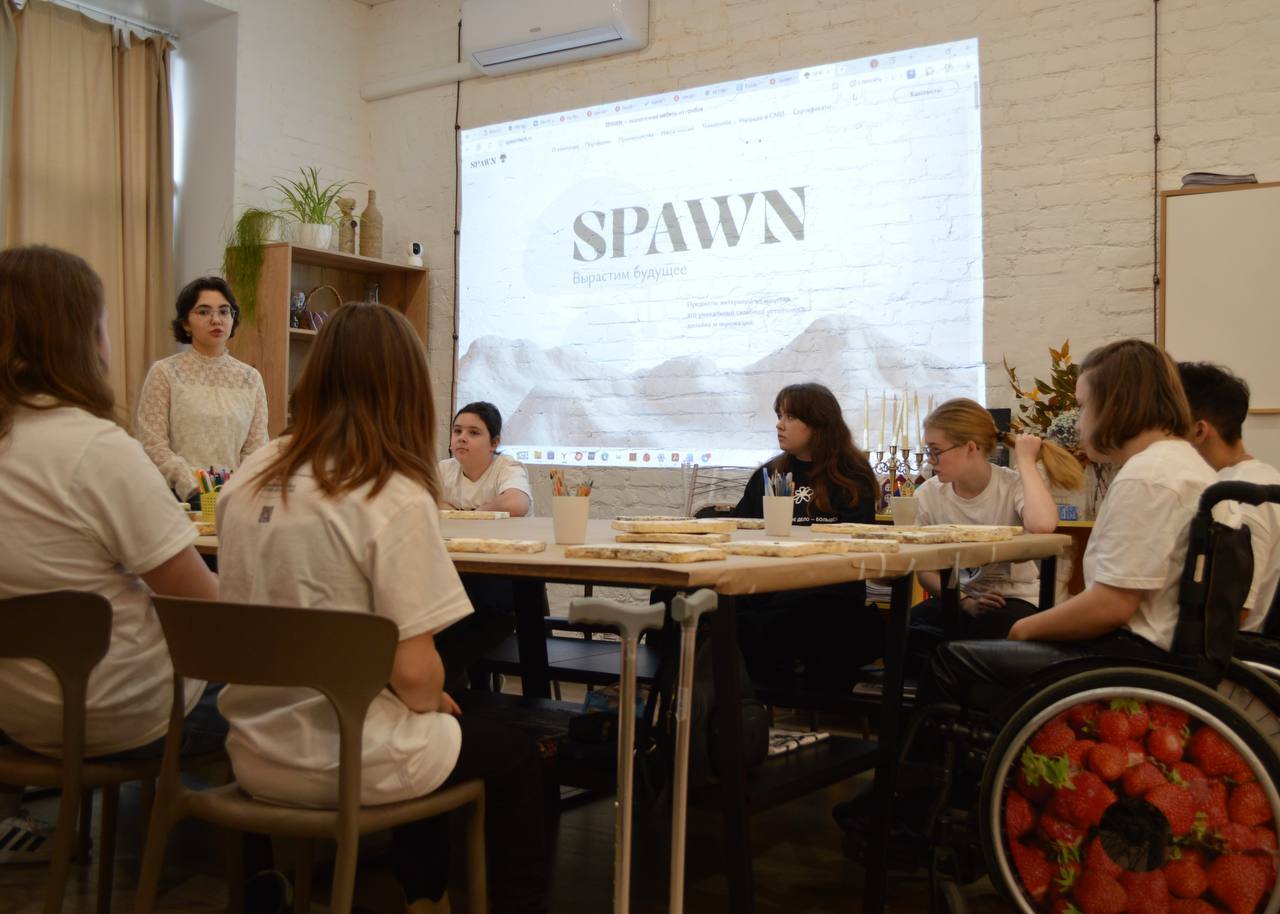 «СПАУН» выращивает изделия из грибов – мебель, предметы интерьера, архитектурные конструкции – с использованием вторичных ресурсов. Для проведения мастер-класса компания вырастила на своем производстве 65 фоторамок из мицелия. Подростки расписывали эти эко-рамки, а еще им рассказали о принципах устойчивого развития и бережного отношения к ресурсам планеты. Такой формат позволяет в игровой форме донести до подростков важные экологические идеи.